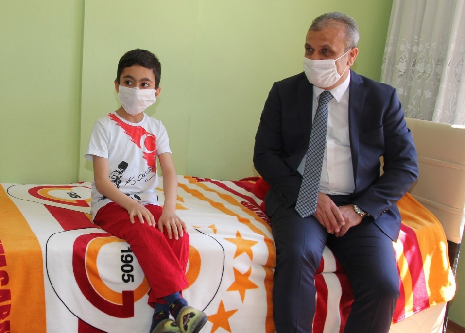 Belediye Başkanımız Muammer Yanık, tüm dünyayı etkisi altına alan korona virüs salgını nedeniyle sokağa çıkması yasak olan 3. Sınıf öğrencisi Uğur Şenocak’ı evinde ziyaret ederek, 23 Nisan Ulusal Egemenlik ve Çocuk Bayramı’nı kutladı.
