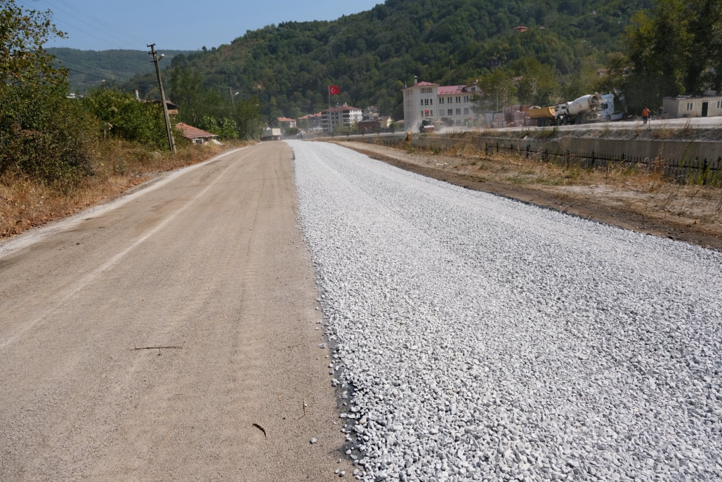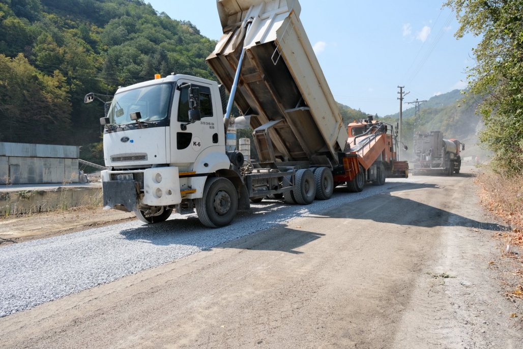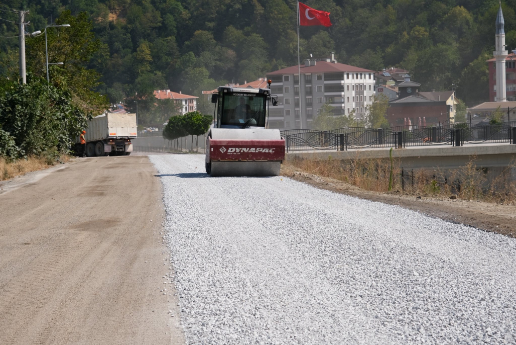 Merkez Mahallesi Ezine Caddesi eski taş ocağı mevki güzergahında 550 metre satih kaplama asfalt yapım çalışması tamamlandı.